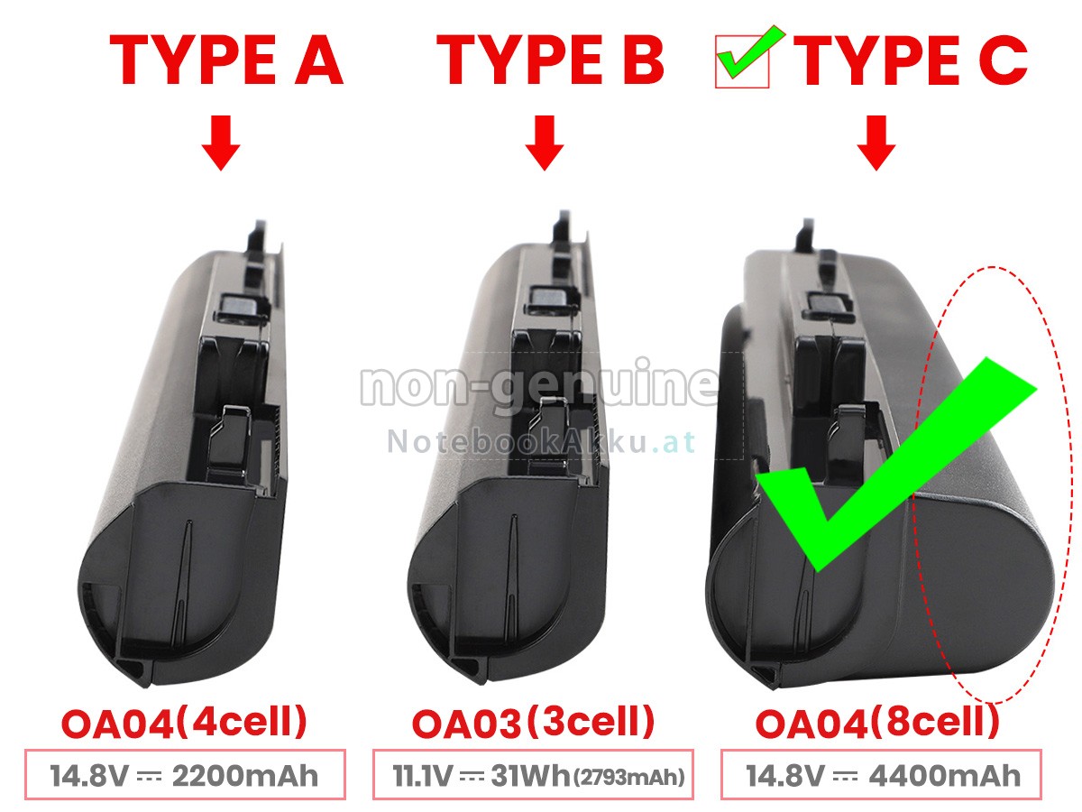 2 Vergleichen Sie die Spannung und das Fassungsvermögen Ihrer Akku für Compaq 15-H041NF mit unserer, dann schauen Sie das Bild und prüfen Sie, ob die Schittstelle und Form der neuen Akku gleich mit der alten Batterie ist.