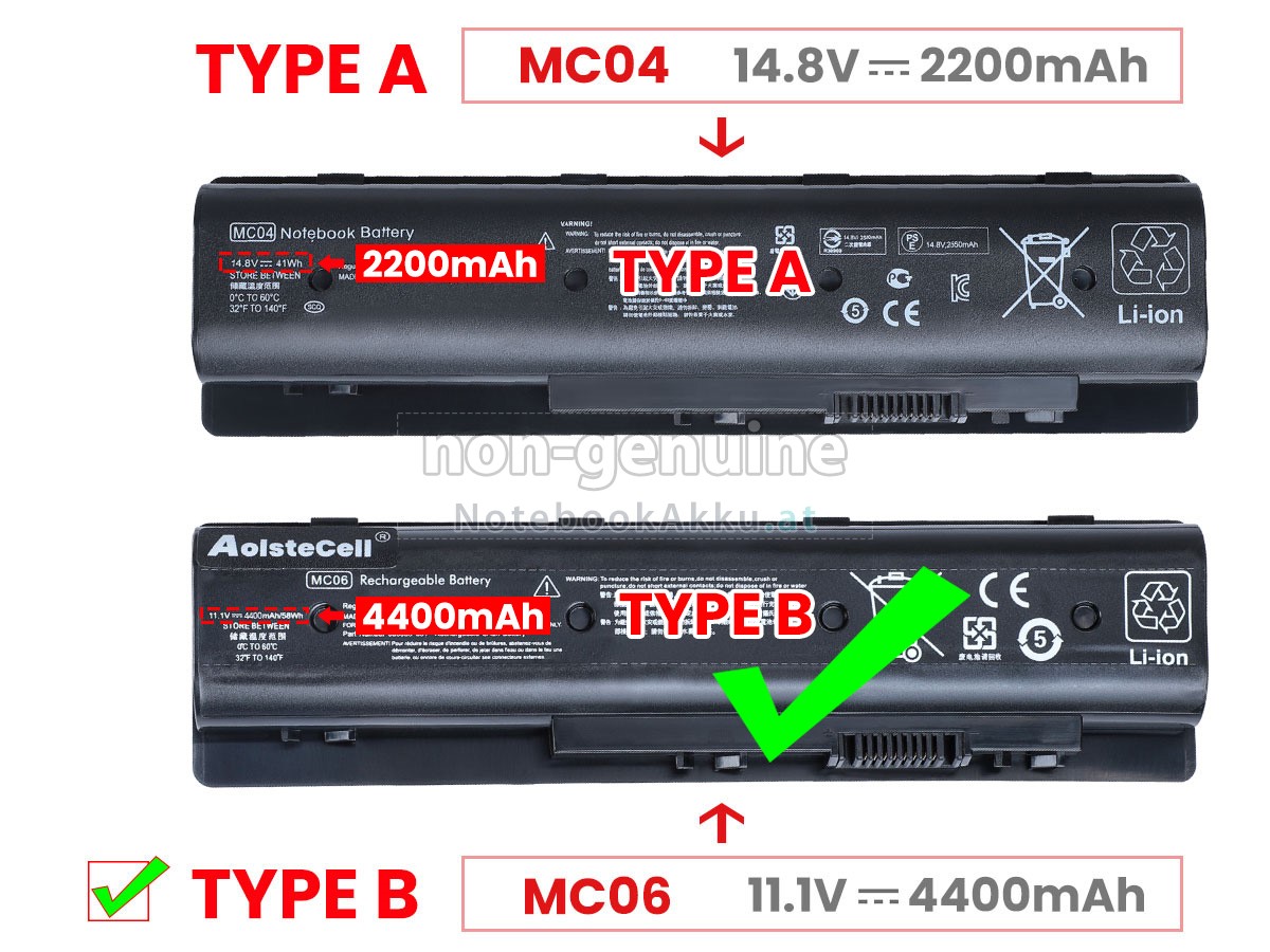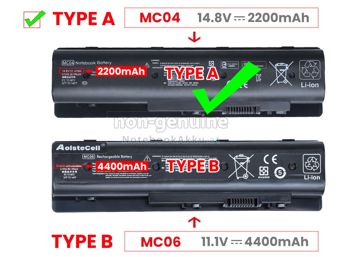 2 Vergleichen Sie die Spannung und das Fassungsvermögen Ihrer Akku für HP Envy 17-N101NO mit unserer, dann schauen Sie das Bild und prüfen Sie, ob die Schittstelle und Form der neuen Akku gleich mit der alten Batterie ist.