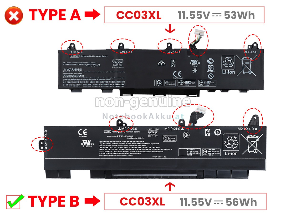 2 Vergleichen Sie die Spannung und das Fassungsvermögen Ihrer Akku für HP L77622-2C1 mit unserer, dann schauen Sie das Bild und prüfen Sie, ob die Schittstelle und Form der neuen Akku gleich mit der alten Batterie ist.