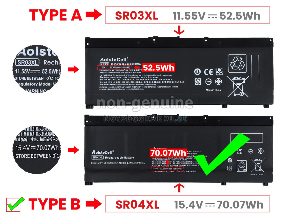 2 Vergleichen Sie die Spannung und das Fassungsvermögen Ihrer Akku für HP Omen 15-CE013NB mit unserer, dann schauen Sie das Bild und prüfen Sie, ob die Schittstelle und Form der neuen Akku gleich mit der alten Batterie ist.