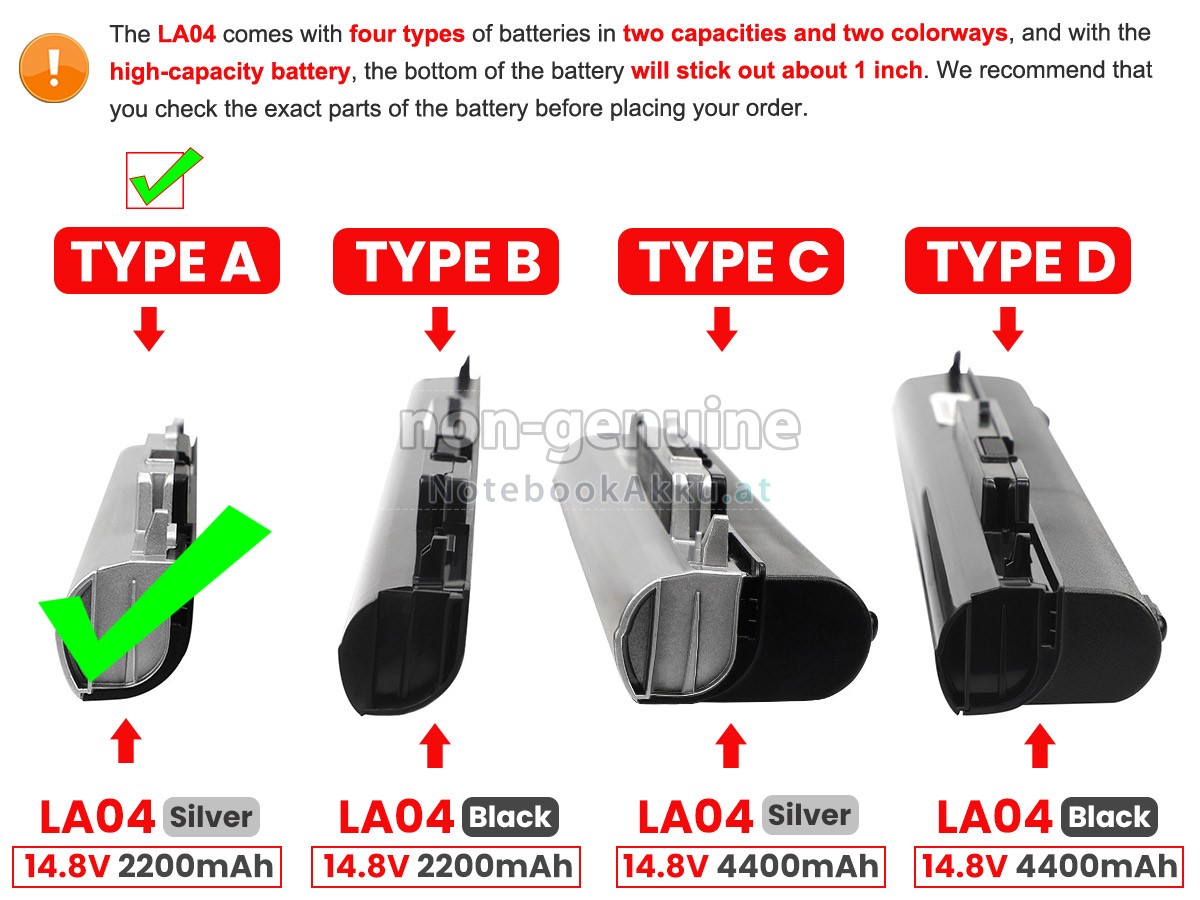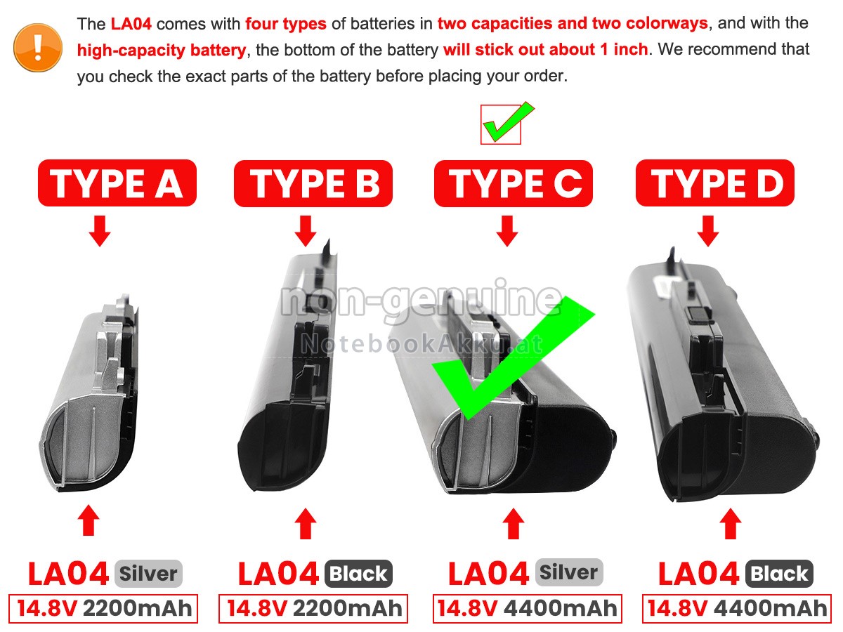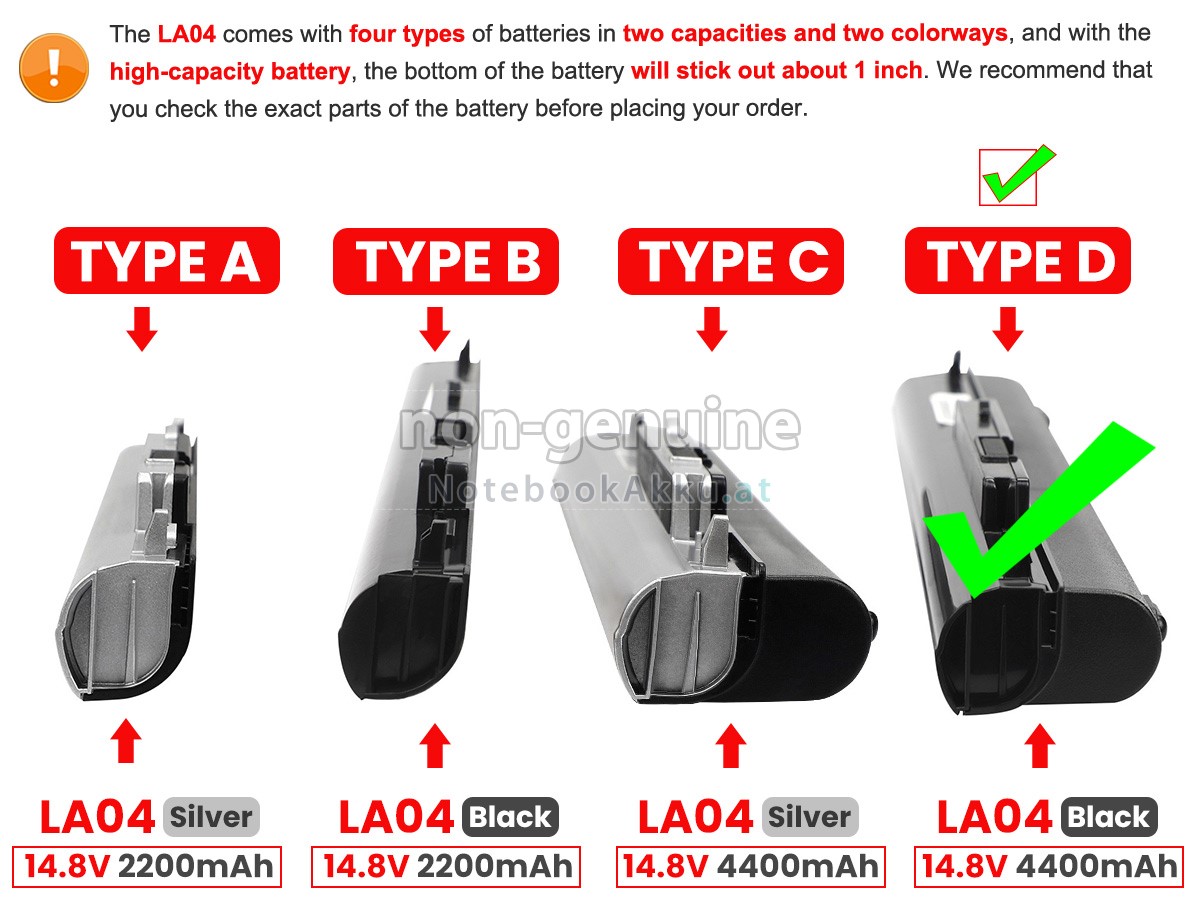 2 Vergleichen Sie die Spannung und das Fassungsvermögen Ihrer Akku für HP Pavilion 14-N021TX mit unserer, dann schauen Sie das Bild und prüfen Sie, ob die Schittstelle und Form der neuen Akku gleich mit der alten Batterie ist.