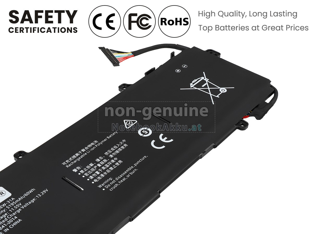 Jede unserer Akkus für Huawei MAGICBOOK VIEW 14 ist vollständig kompatibel mit dem Originalhersteller. Außerdem besteht sie eine Serie Sicherheitszertifikaten wie OVE,CE,UL,ROHS,ISO9001 / 9002. Vor dem Warenausgang überprüfen unsere Techniker sie streng, um Ihre Sicherheit so viel wie möglich zu garantieren. Vor der Versendung hüllen wir MAGICBOOK VIEW 14-Batterie mit einigen Schichten Luftpolsterfolien ein, um die Verletzung bei der Lieferung zu vermeiden.