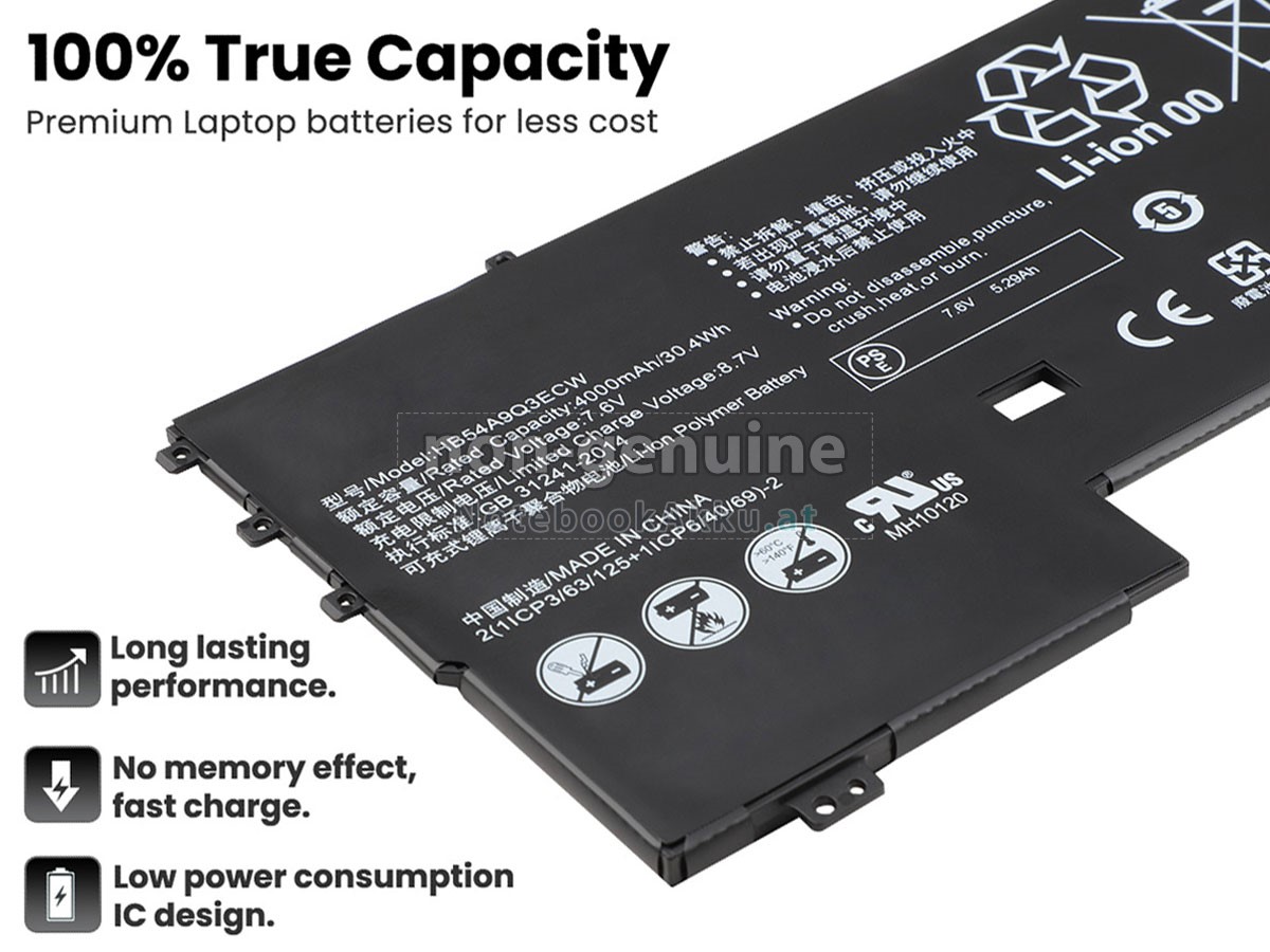Ersatzakku für Huawei WT-W19 in der Webseite NotebookAkku.at zählt zu besten Wahlen. Wir bieten Ihnen mit günstigerem Preis die hochwertigere Akku des Notebooks. Huawei WT-W19 Akku, der aus hochwertigem Li-Polymer von Samsung, Panasonic und LG hergestellt wird, kann für mindestens 600 Zyklen aufgeladen / entladen werden, was Ihnen ein hervorragendes Erlebnis zur anhaltenden Verwendung bietet.