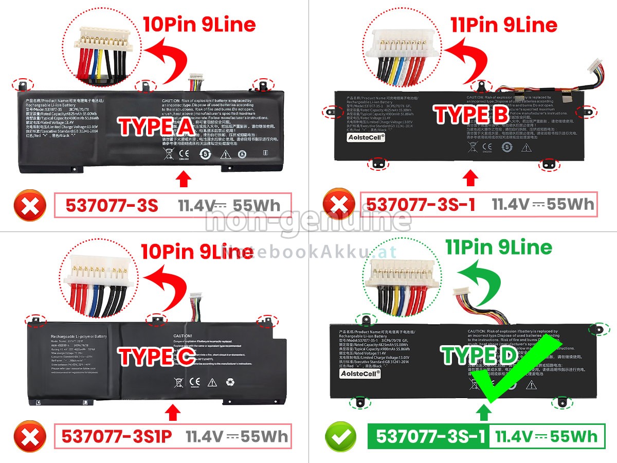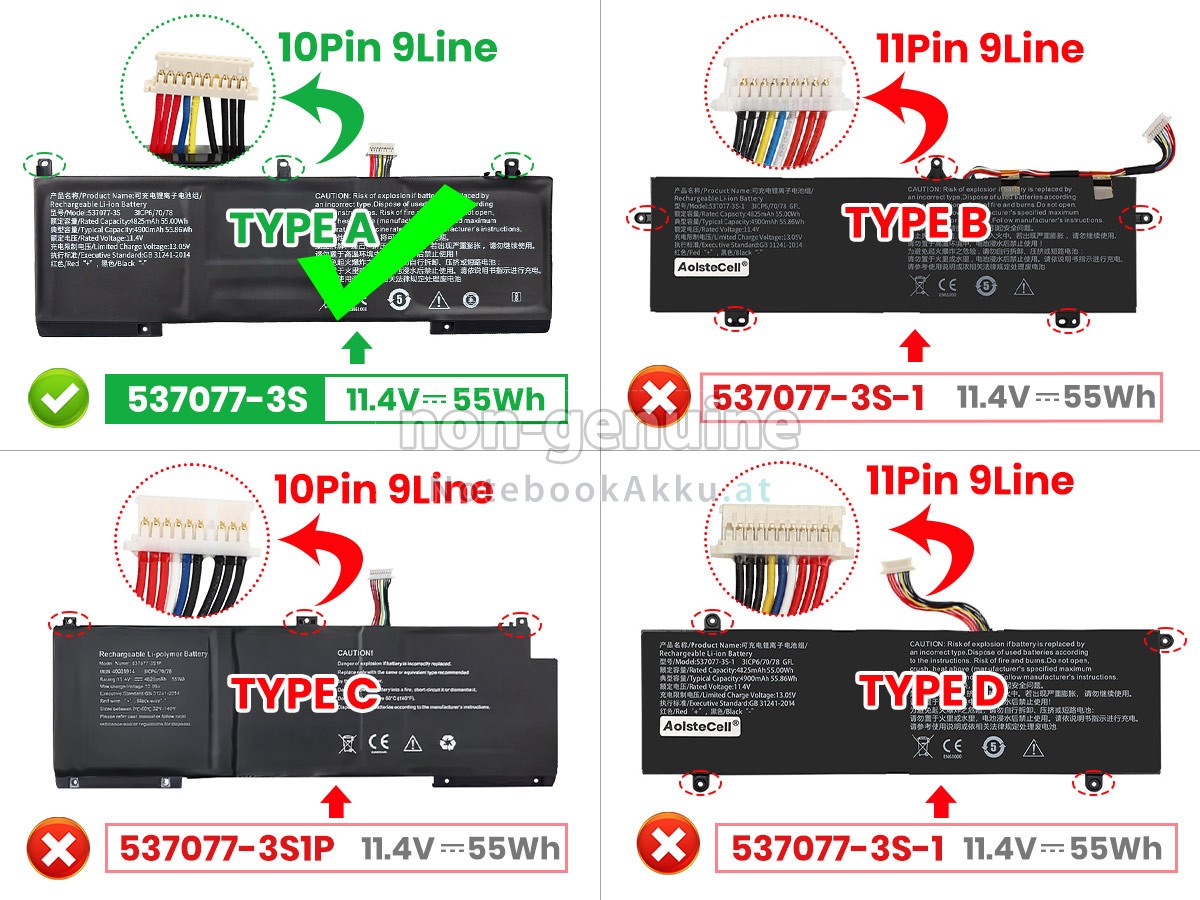 2 Vergleichen Sie die Spannung und das Fassungsvermögen Ihrer Akku für IPASON SMARTBOOK S1 mit unserer, dann schauen Sie das Bild und prüfen Sie, ob die Schittstelle und Form der neuen Akku gleich mit der alten Batterie ist.