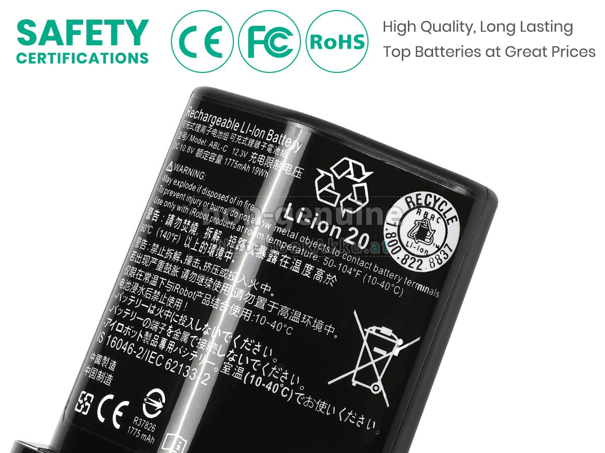 Jede unserer Akkus für Irobot M6100 Staubsauger ist vollständig kompatibel mit dem Originalhersteller. Außerdem besteht sie eine Serie Sicherheitszertifikaten wie OVE,CE,UL,ROHS,ISO9001 / 9002. Vor dem Warenausgang überprüfen unsere Techniker sie streng, um Ihre Sicherheit so viel wie möglich zu garantieren. Vor der Versendung hüllen wir Irobot M6100 Batterie mit einigen Schichten Luftpolsterfolien ein, um die Verletzung bei der Lieferung zu vermeiden.