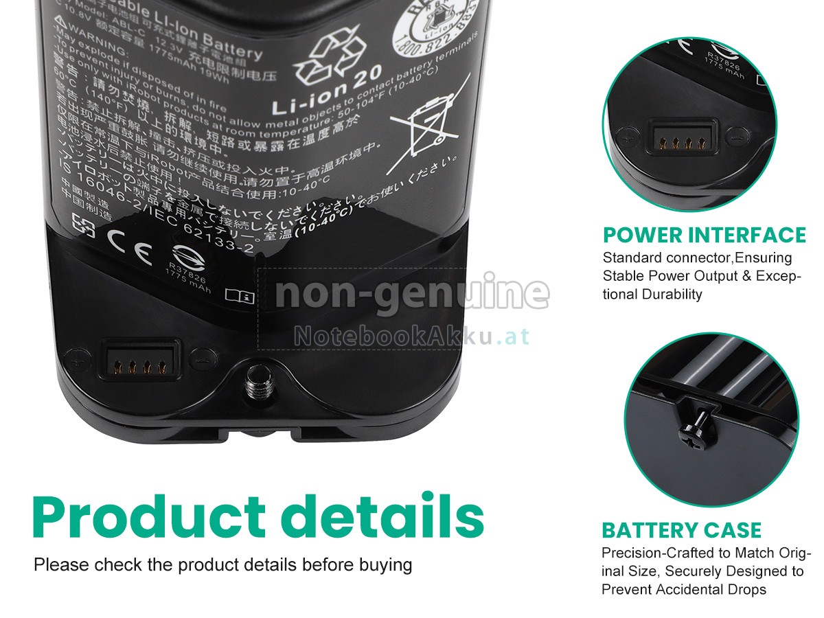 Ersatzakku für Irobot M6100 in der Webseite NotebookAkku.at zählt zu besten Wahlen. Wir bieten Ihnen mit günstigerem Preis die hochwertigere Akku des Staubsauger. Irobot M6100 Akku, der aus hochwertigem Li-ion von Samsung, Panasonic und LG hergestellt wird, kann für mindestens 600 Zyklen aufgeladen / entladen werden, was Ihnen ein hervorragendes Erlebnis zur anhaltenden Verwendung bietet.