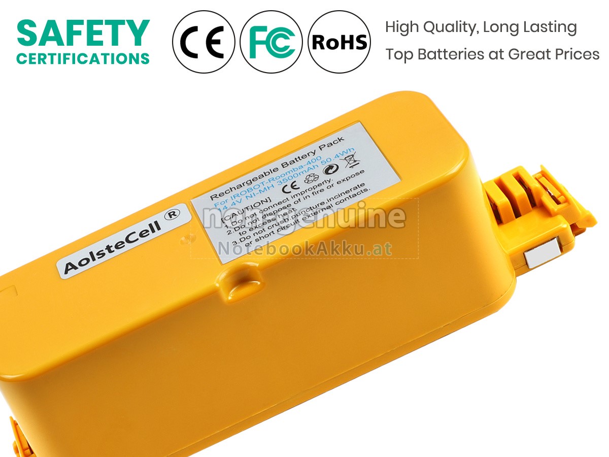 Ersatzakku für Irobot ROOMBA 4105 in der Webseite NotebookAkku.at zählt zu besten Wahlen. Wir bieten Ihnen mit günstigerem Preis die hochwertigere Akku des Staubsauger. Irobot ROOMBA 4105 Akku, der aus hochwertigem Ni-MH von Samsung, Panasonic und LG hergestellt wird, kann für mindestens 600 Zyklen aufgeladen / entladen werden, was Ihnen ein hervorragendes Erlebnis zur anhaltenden Verwendung bietet.