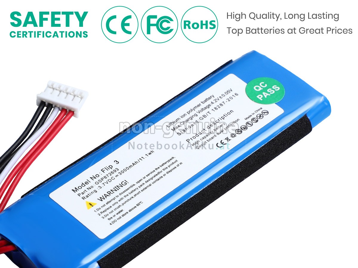 Ersatzakku für JBL GSP872693 in der Webseite NotebookAkku.at zählt zu besten Wahlen. Wir bieten Ihnen mit günstigerem Preis die hochwertigere Akku des Lautsprecher. JBL GSP872693 Akku, der aus hochwertigem Li-ion von Samsung, Panasonic und LG hergestellt wird, kann für mindestens 600 Zyklen aufgeladen / entladen werden, was Ihnen ein hervorragendes Erlebnis zur anhaltenden Verwendung bietet.