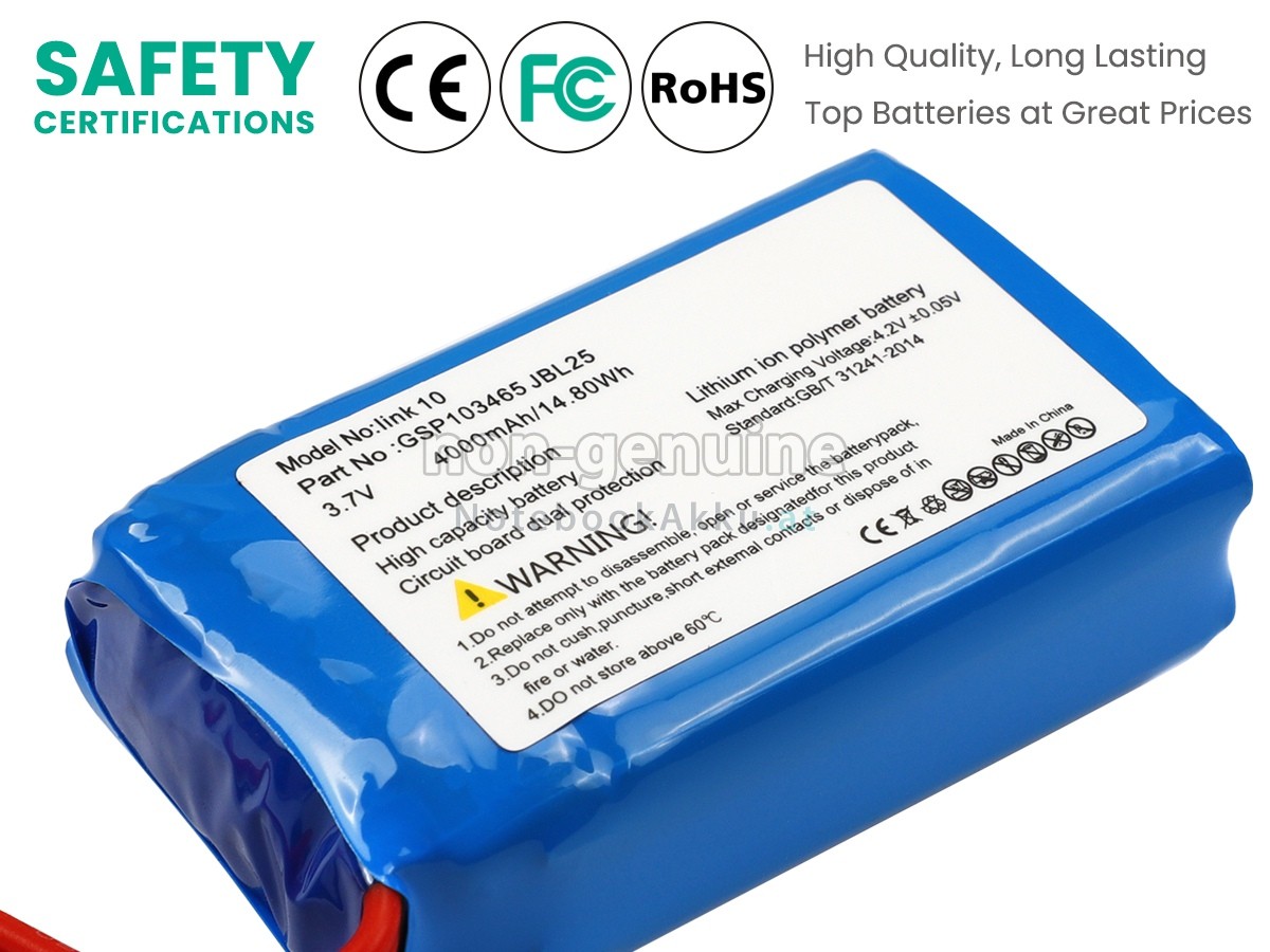 Jede unserer Akkus für JBL LINK 10 Lautsprecher ist vollständig kompatibel mit dem Originalhersteller. Außerdem besteht sie eine Serie Sicherheitszertifikaten wie OVE,CE,UL,ROHS,ISO9001 / 9002. Vor dem Warenausgang überprüfen unsere Techniker sie streng, um Ihre Sicherheit so viel wie möglich zu garantieren. Vor der Versendung hüllen wir JBL LINK 10 Batterie mit einigen Schichten Luftpolsterfolien ein, um die Verletzung bei der Lieferung zu vermeiden.