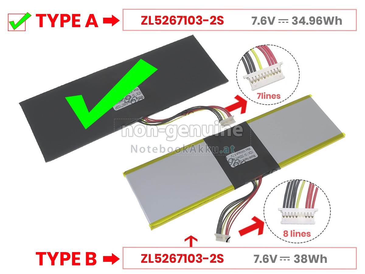 2 Vergleichen Sie die Spannung und das Fassungsvermögen Ihrer Akku für Jumper WTL5267103-2S mit unserer, dann schauen Sie das Bild und prüfen Sie, ob die Schittstelle und Form der neuen Akku gleich mit der alten Batterie ist.