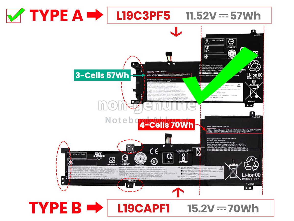 2 Vergleichen Sie die Spannung und das Fassungsvermögen Ihrer Akku für Lenovo IdeaPad 5-15ALC05-82LN0046FR mit unserer, dann schauen Sie das Bild und prüfen Sie, ob die Schittstelle und Form der neuen Akku gleich mit der alten Batterie ist.