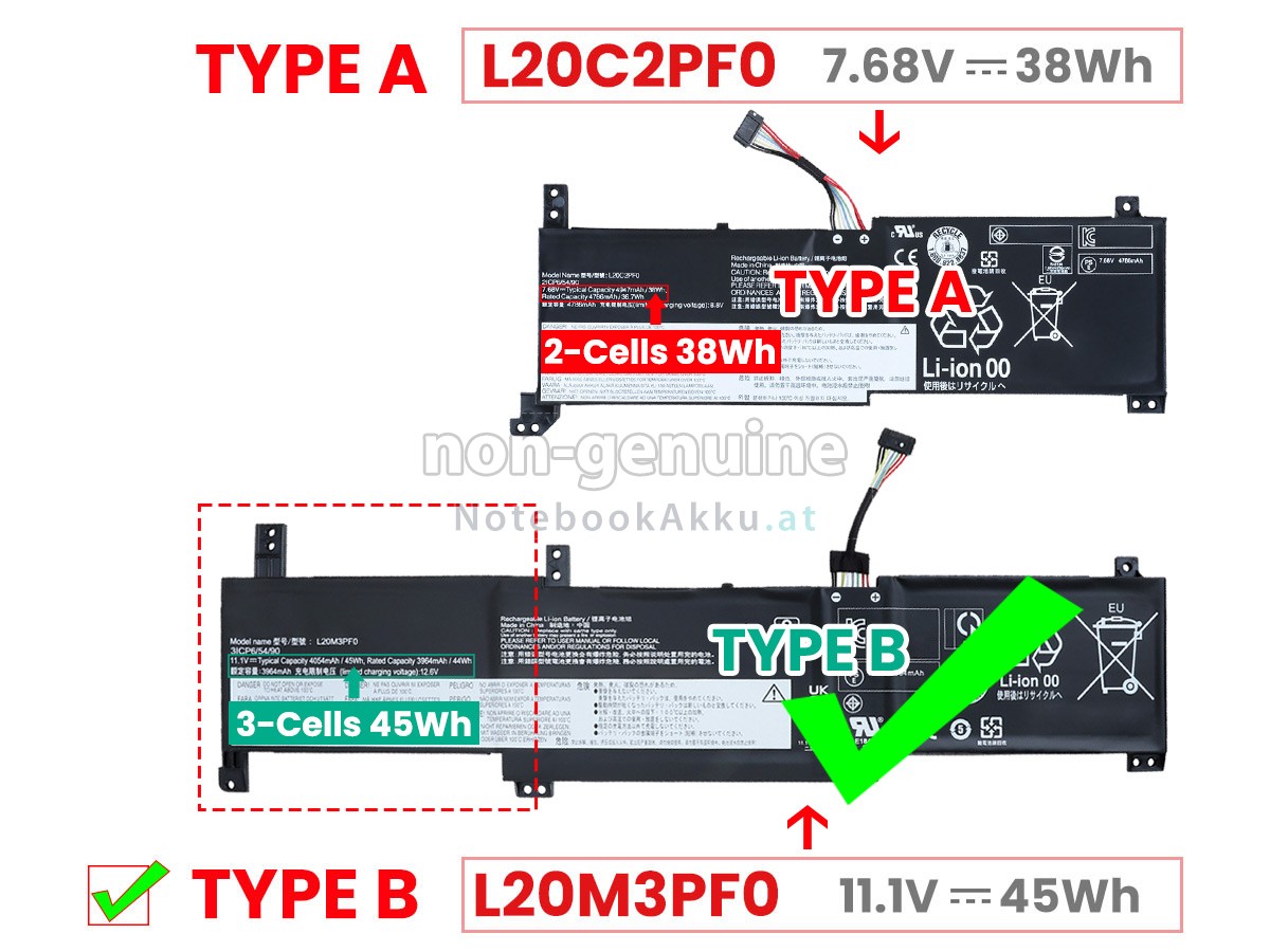 2 Vergleichen Sie die Spannung und das Fassungsvermögen Ihrer Akku für Lenovo V17 G2 ITL-82NX00EDPE mit unserer, dann schauen Sie das Bild und prüfen Sie, ob die Schittstelle und Form der neuen Akku gleich mit der alten Batterie ist.