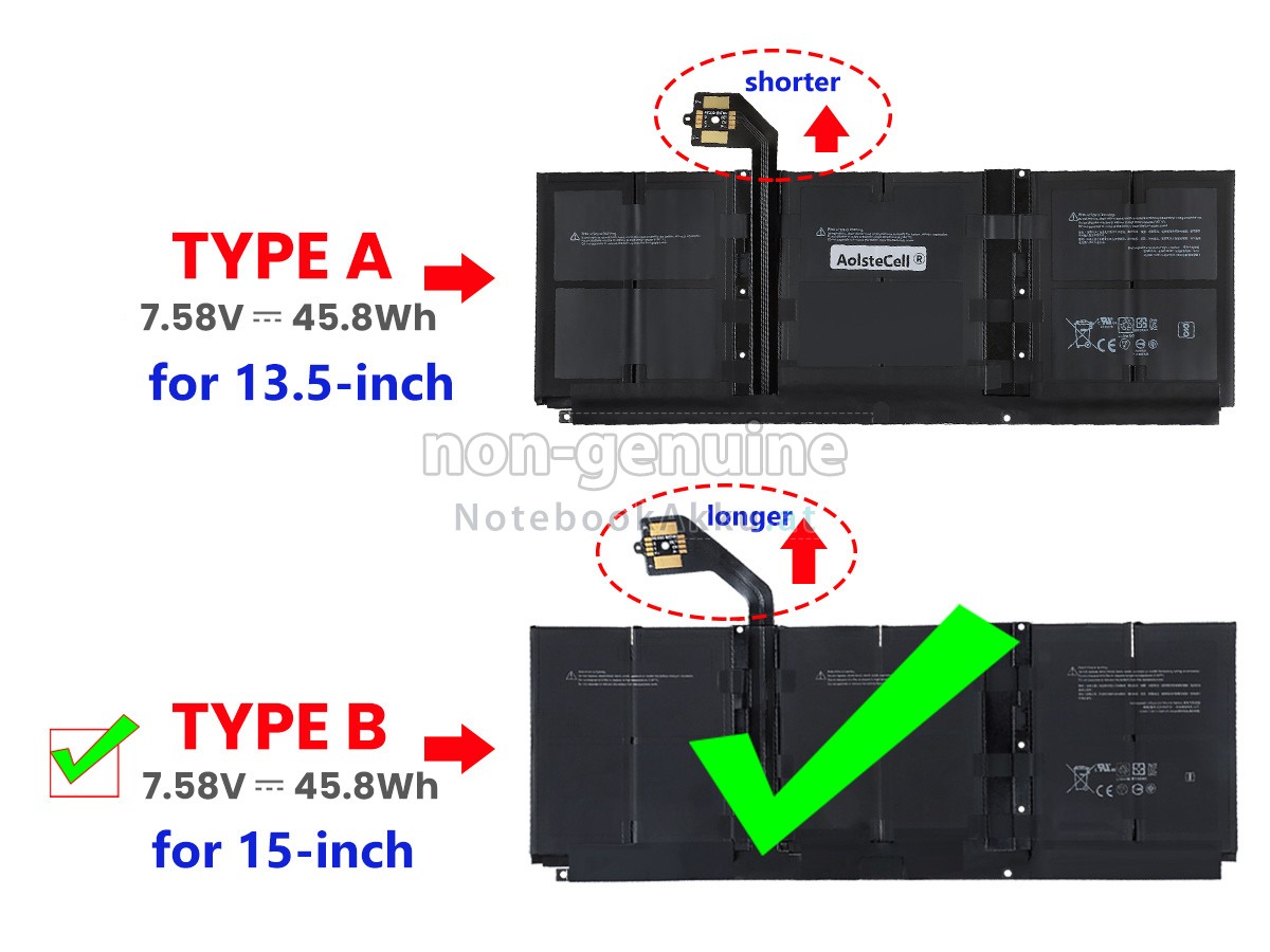 2 Vergleichen Sie die Spannung und das Fassungsvermögen Ihrer Akku für Microsoft Surface LAPTOP 5 mit unserer, dann schauen Sie das Bild und prüfen Sie, ob die Schittstelle und Form der neuen Akku gleich mit der alten Batterie ist.