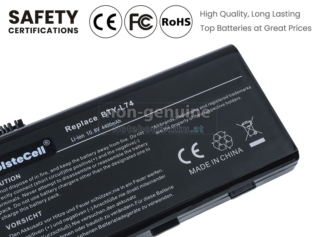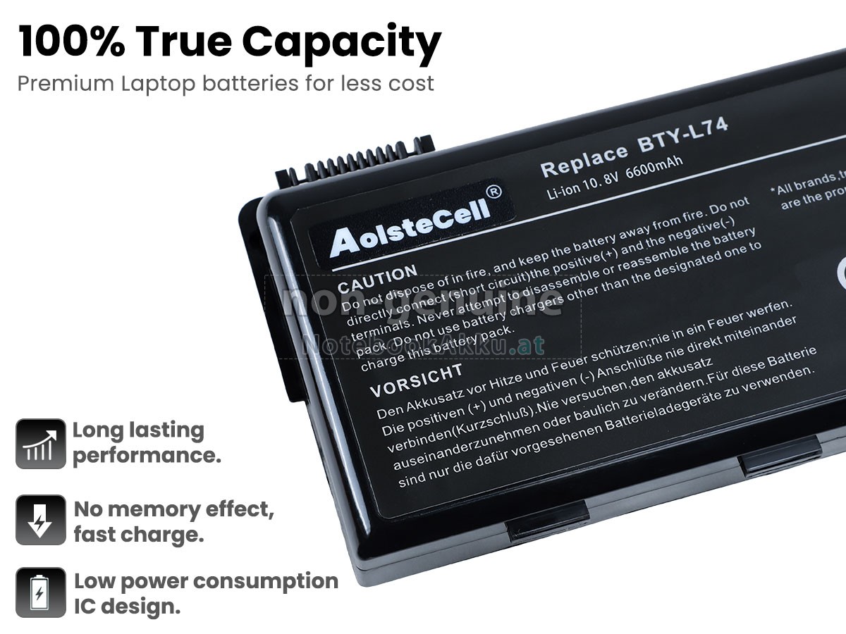 Ersatzakku für MSI A7005 in der Webseite NotebookAkku.at zählt zu besten Wahlen. Wir bieten Ihnen mit günstigerem Preis die hochwertigere Akku des Notebooks. MSI A7005 Akku, der aus hochwertigem Li-ion von Samsung, Panasonic und LG hergestellt wird, kann für mindestens 600 Zyklen aufgeladen / entladen werden, was Ihnen ein hervorragendes Erlebnis zur anhaltenden Verwendung bietet.