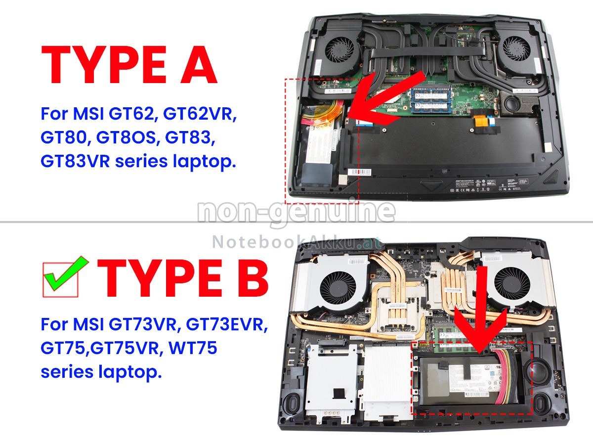 2 Vergleichen Sie die Spannung und das Fassungsvermögen Ihrer Akku für MSI GT75 TITAN 9SG-404IT mit unserer, dann schauen Sie das Bild und prüfen Sie, ob die Schittstelle und Form der neuen Akku gleich mit der alten Batterie ist.