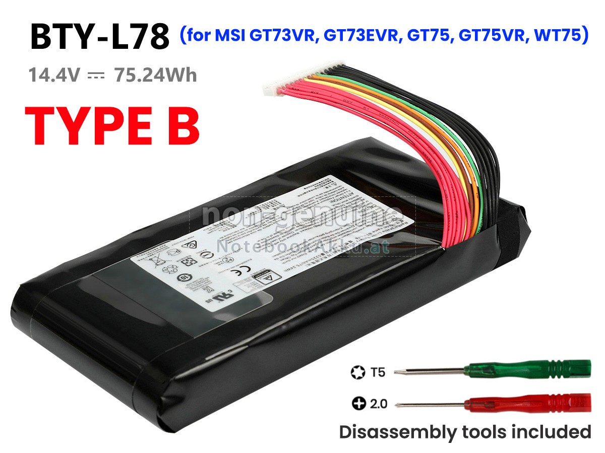 Ersatzakku für MSI GT75 TITAN 9SG-404IT in der Webseite NotebookAkku.at zählt zu besten Wahlen. Wir bieten Ihnen mit günstigerem Preis die hochwertigere Akku des Notebooks. MSI GT75 TITAN 9SG-404IT Akku, der aus hochwertigem Li-ion von Samsung, Panasonic und LG hergestellt wird, kann für mindestens 600 Zyklen aufgeladen / entladen werden, was Ihnen ein hervorragendes Erlebnis zur anhaltenden Verwendung bietet.