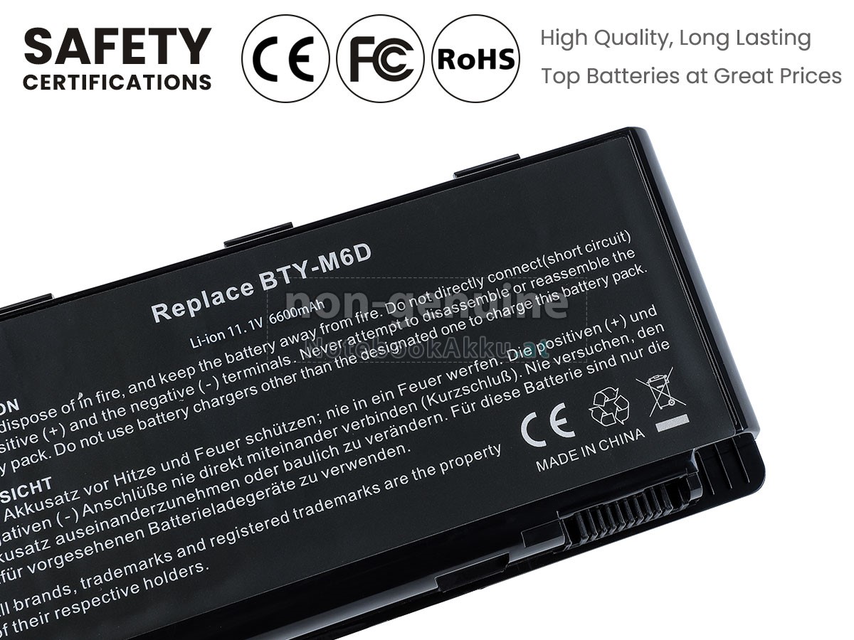 Jede unserer Akkus für MSI GX660R ist vollständig kompatibel mit dem Originalhersteller. Außerdem besteht sie eine Serie Sicherheitszertifikaten wie OVE,CE,UL,ROHS,ISO9001 / 9002. Vor dem Warenausgang überprüfen unsere Techniker sie streng, um Ihre Sicherheit so viel wie möglich zu garantieren. Vor der Versendung hüllen wir GX660R-Batterie mit einigen Schichten Luftpolsterfolien ein, um die Verletzung bei der Lieferung zu vermeiden.