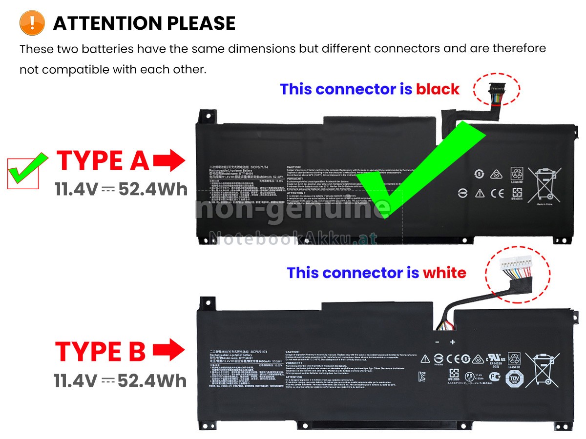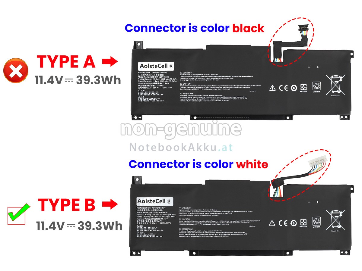 There are 2 types of batteries named "BTY-M491", please check the connector of your old battery before placing an order, make sure it is the same as ours. - SKUNAT7336
