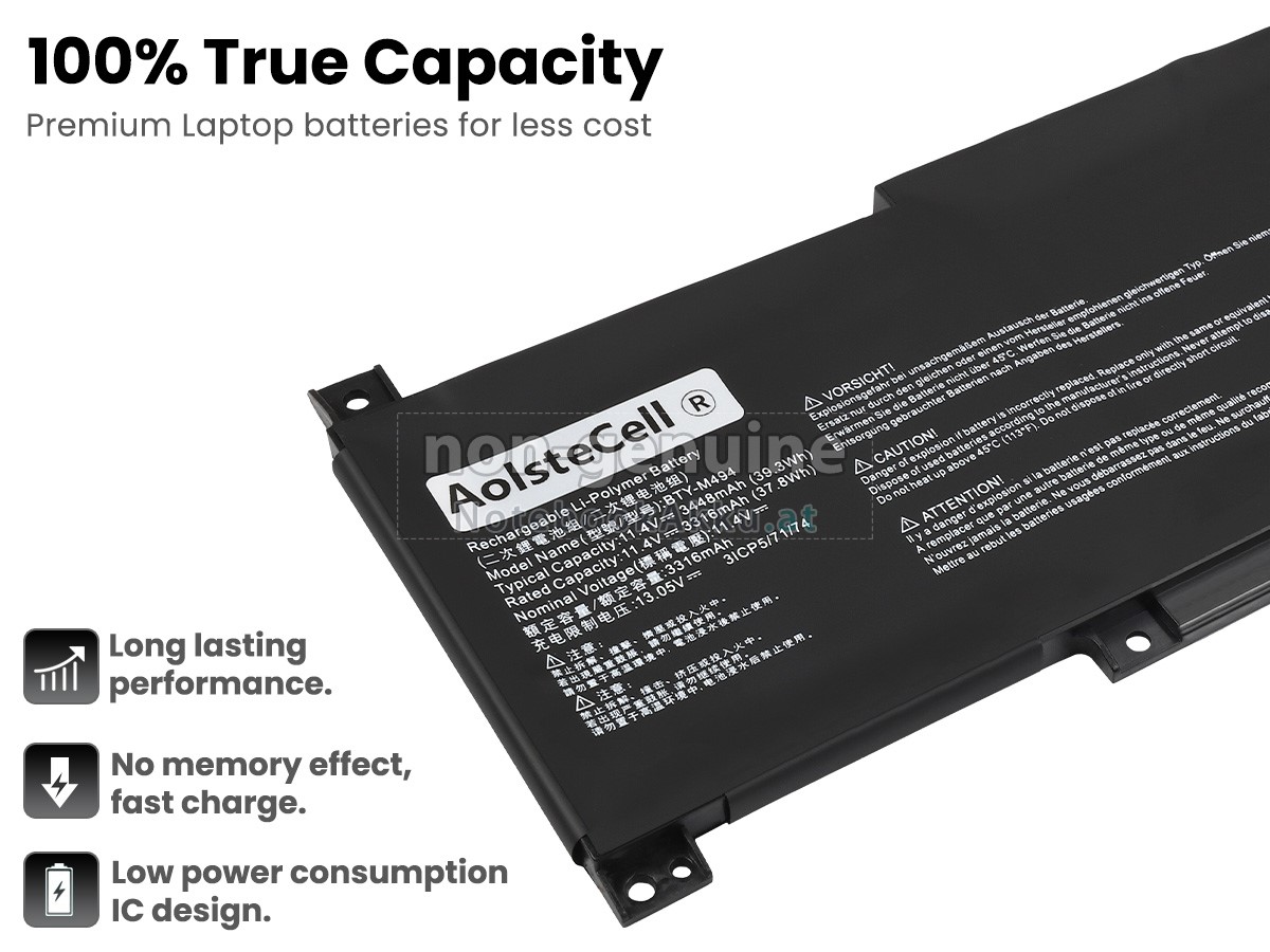 Ersatzakku für MSI MODERN 15 A11MU-652 in der Webseite NotebookAkku.at zählt zu besten Wahlen. Wir bieten Ihnen mit günstigerem Preis die hochwertigere Akku des Notebooks. MSI MODERN 15 A11MU-652 Akku, der aus hochwertigem Li-Polymer von Samsung, Panasonic und LG hergestellt wird, kann für mindestens 600 Zyklen aufgeladen / entladen werden, was Ihnen ein hervorragendes Erlebnis zur anhaltenden Verwendung bietet.