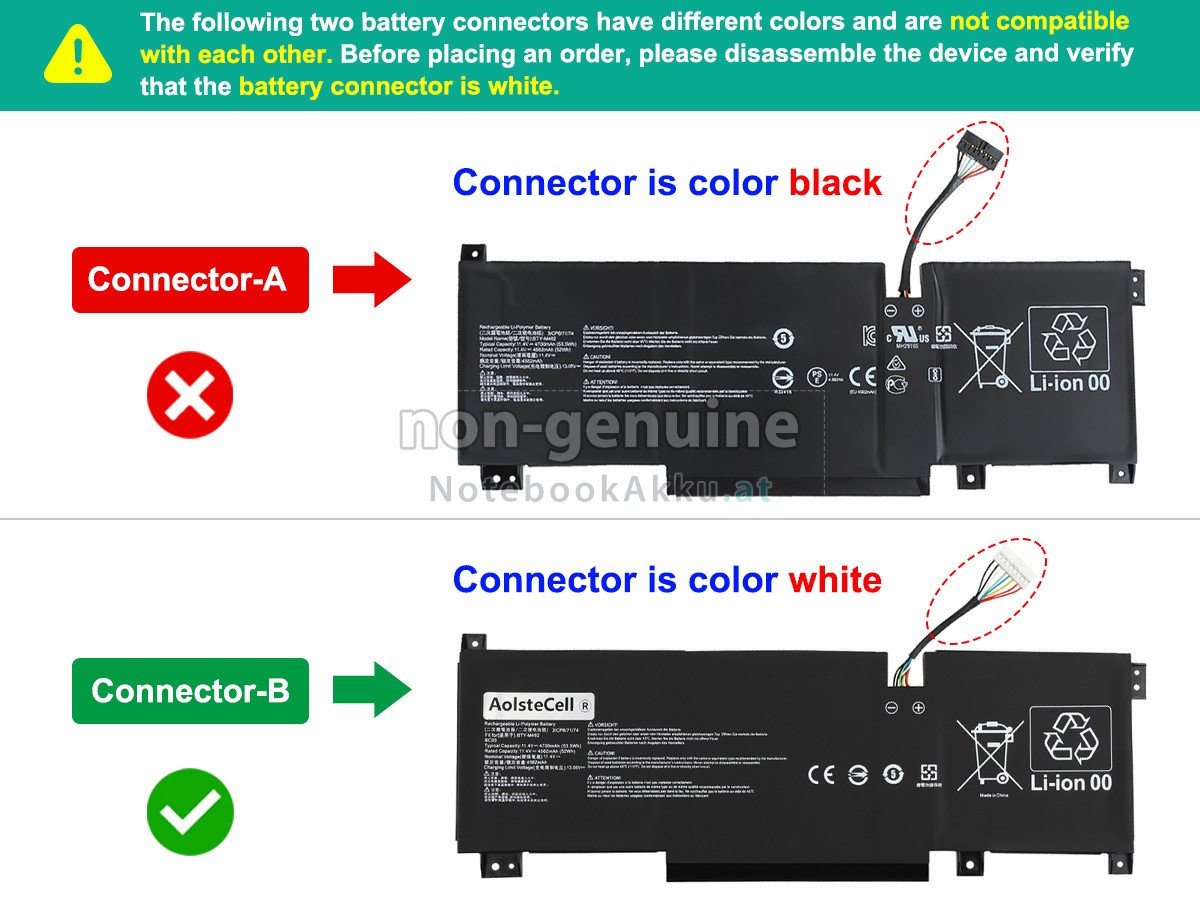 2 Vergleichen Sie die Spannung und das Fassungsvermögen Ihrer Akku für MSI PULSE GL76 11UEK mit unserer, dann schauen Sie das Bild und prüfen Sie, ob die Schittstelle und Form der neuen Akku gleich mit der alten Batterie ist.