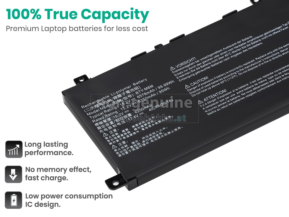 Ersatzakku für MSI WS76 11UK in der Webseite NotebookAkku.at zählt zu besten Wahlen. Wir bieten Ihnen mit günstigerem Preis die hochwertigere Akku des Notebooks. MSI WS76 11UK Akku, der aus hochwertigem Li-Polymer von Samsung, Panasonic und LG hergestellt wird, kann für mindestens 600 Zyklen aufgeladen / entladen werden, was Ihnen ein hervorragendes Erlebnis zur anhaltenden Verwendung bietet.