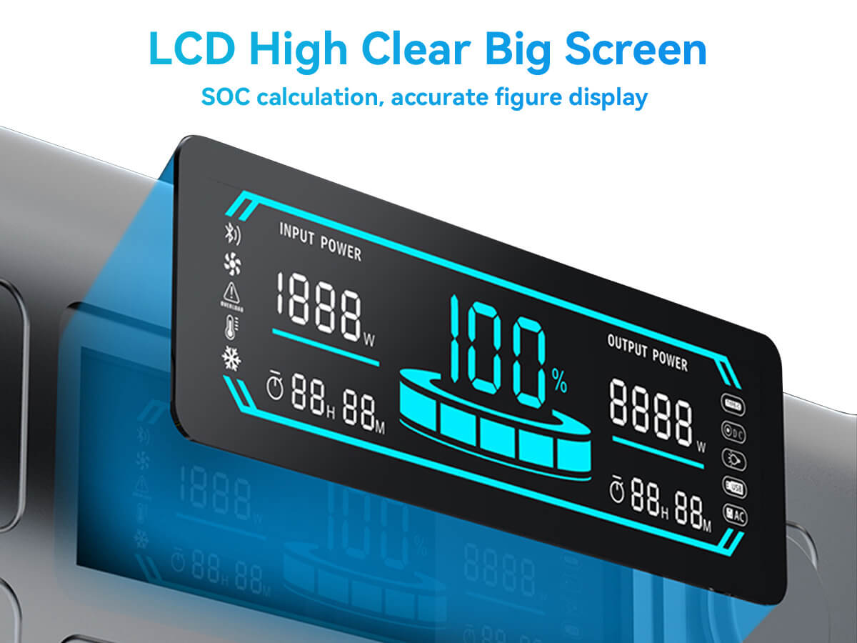 Unsere tragbare Powerstation für den Apower1000 verfügt über eine beeindruckende Wechselstromleistung von 1800 W (220 V) bzw. 1600 W (110 V) und bietet damit die Flexibilität, eine Vielzahl von Geräten und Apparaten zu betreiben. Zusätzlich bietet sie einen leistungsstarken DC-Ausgang von 12V18A/200W Max, wodurch sie für verschiedene Anwendungen geeignet ist. Durch diese Vielseitigkeit wird sichergestellt, dass alle Ihre Stromanforderungen effizient und zuverlässig erfüllt werden.