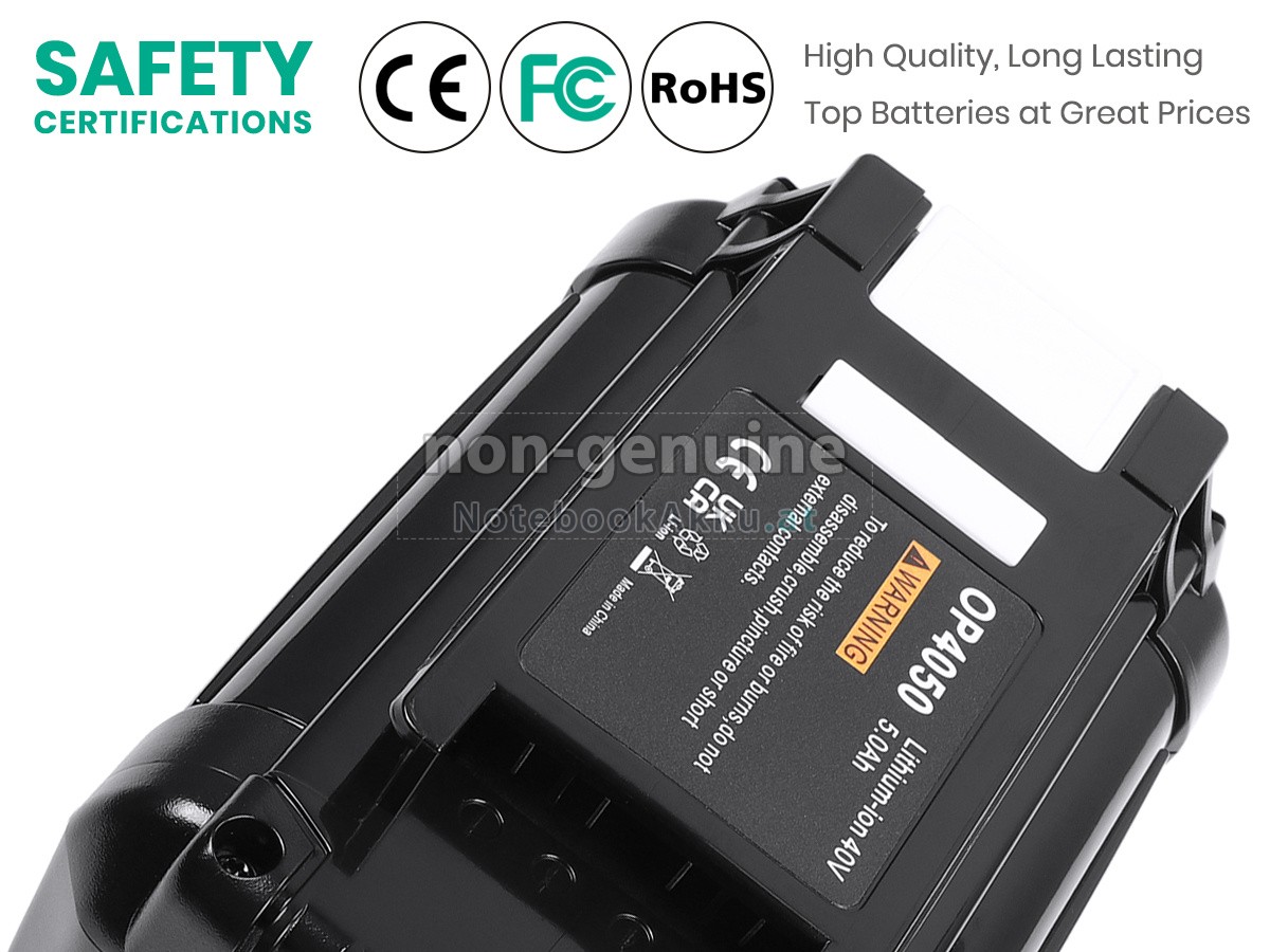 Jede unserer Akkus für Ryobi OP40601 ist vollständig kompatibel mit dem Originalhersteller. Außerdem besteht sie eine Serie Sicherheitszertifikaten wie OVE,CE,UL,ROHS,ISO9001 / 9002. Vor dem Warenausgang überprüfen unsere Techniker sie streng, um Ihre Sicherheit so viel wie möglich zu garantieren. Vor der Versendung hüllen wir Ryobi OP40601 Batterie mit einigen Schichten Luftpolsterfolien ein, um die Verletzung bei der Lieferung zu vermeiden.