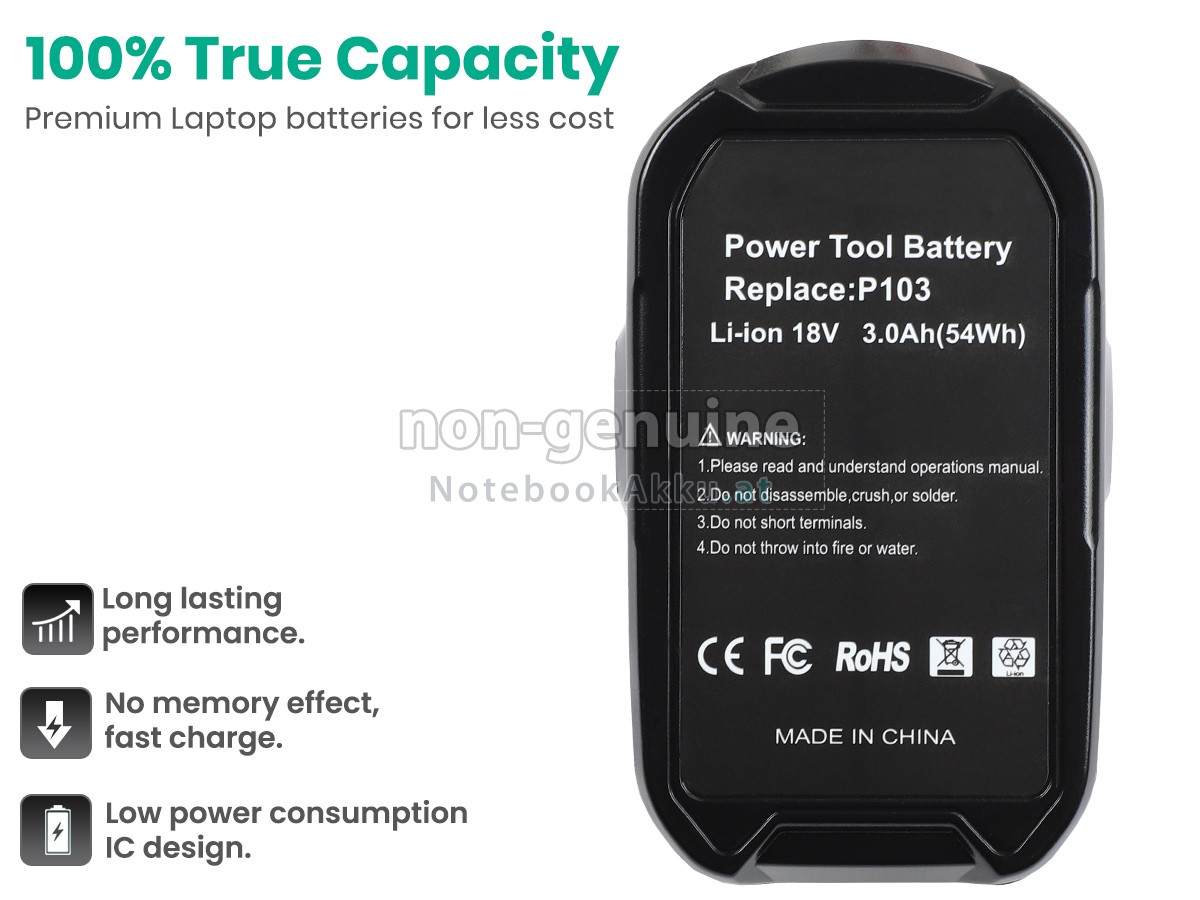 Ersatzakku für Ryobi P650 in der Webseite NotebookAkku.at zählt zu besten Wahlen. Wir bieten Ihnen mit günstigerem Preis die hochwertigere Akku. Ryobi P650 Akku, der aus hochwertigem Li-ion von Samsung, Panasonic und LG hergestellt wird, kann für mindestens 600 Zyklen aufgeladen / entladen werden, was Ihnen ein hervorragendes Erlebnis zur anhaltenden Verwendung bietet.