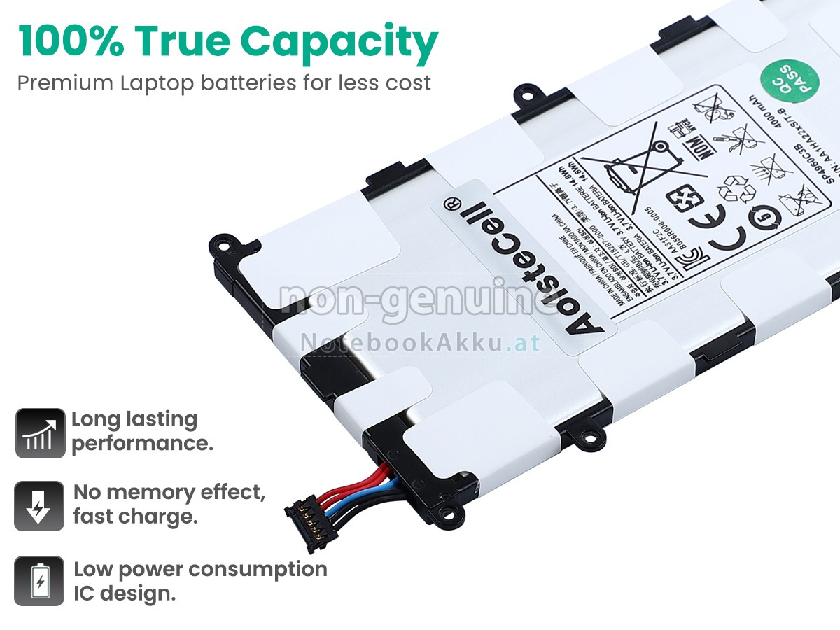 Ersatzakku für Samsung GT-P3113 in der Webseite NotebookAkku.at zählt zu besten Wahlen. Wir bieten Ihnen mit günstigerem Preis die hochwertigere Akku des Notebooks. Samsung GT-P3113 Akku, der aus hochwertigem Li-Polymer von Samsung, Panasonic und LG hergestellt wird, kann für mindestens 600 Zyklen aufgeladen / entladen werden, was Ihnen ein hervorragendes Erlebnis zur anhaltenden Verwendung bietet.