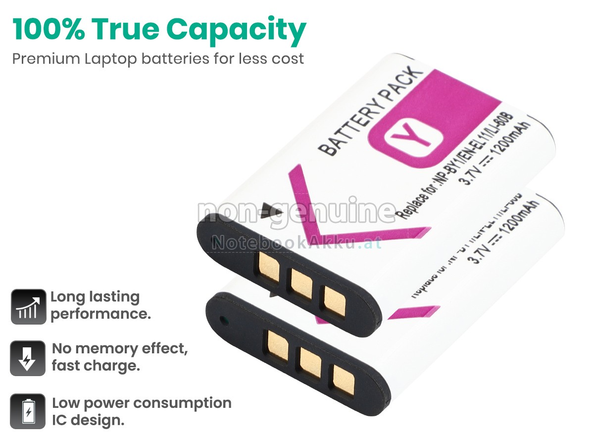 Ersatzakku für Sony D-LI78 in der Webseite NotebookAkku.at zählt zu besten Wahlen. Wir bieten Ihnen mit günstigerem Preis die hochwertigere Akku. Sony D-LI78 Akku, der aus hochwertigem Li-ion von Samsung, Panasonic und LG hergestellt wird, kann für mindestens 600 Zyklen aufgeladen / entladen werden, was Ihnen ein hervorragendes Erlebnis zur anhaltenden Verwendung bietet.