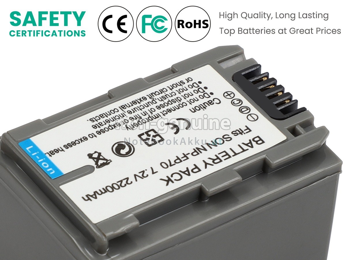 Ersatzakku für Sony DCR-HC23E in der Webseite NotebookAkku.at zählt zu besten Wahlen. Wir bieten Ihnen mit günstigerem Preis die hochwertigere Akku. Sony DCR-HC23E Akku, der aus hochwertigem Li-ion von Samsung, Panasonic und LG hergestellt wird, kann für mindestens 600 Zyklen aufgeladen / entladen werden, was Ihnen ein hervorragendes Erlebnis zur anhaltenden Verwendung bietet.