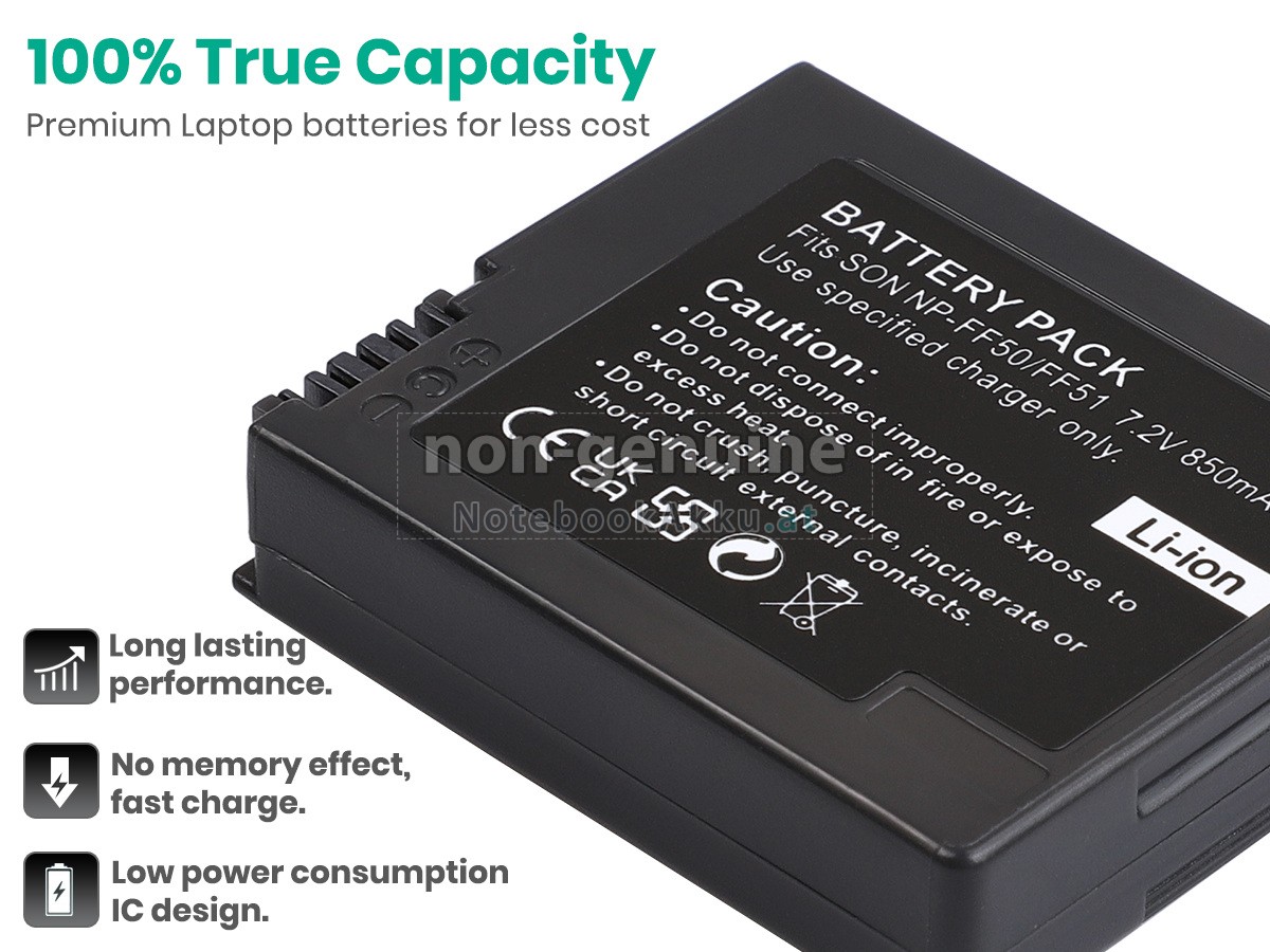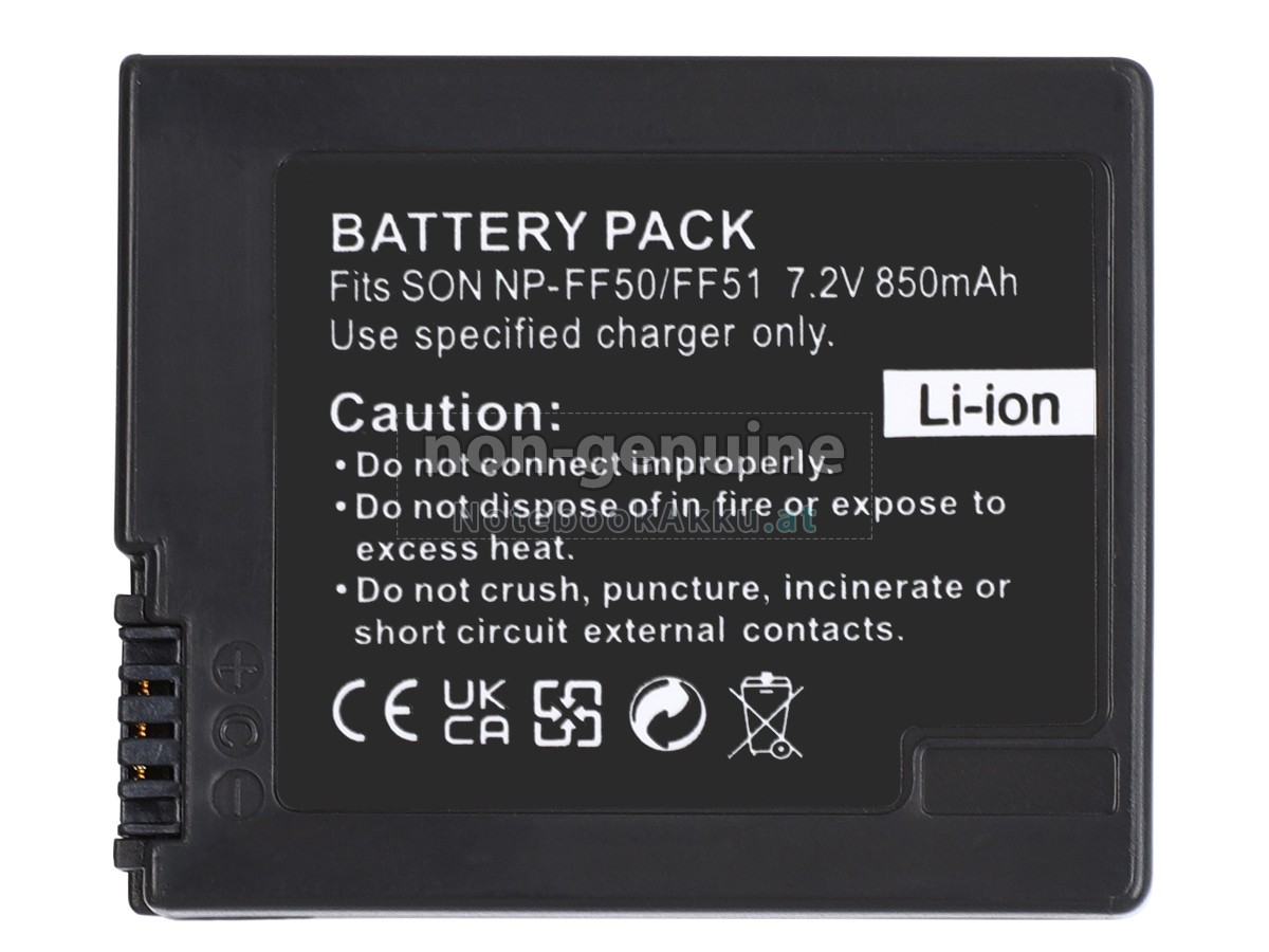 Ersatzakku für Sony NP-FF50 in der Webseite NotebookAkku.at zählt zu besten Wahlen. Wir bieten Ihnen mit günstigerem Preis die hochwertigere Akku. Sony NP-FF50 Akku, der aus hochwertigem Li-ion von Samsung, Panasonic und LG hergestellt wird, kann für mindestens 600 Zyklen aufgeladen / entladen werden, was Ihnen ein hervorragendes Erlebnis zur anhaltenden Verwendung bietet.