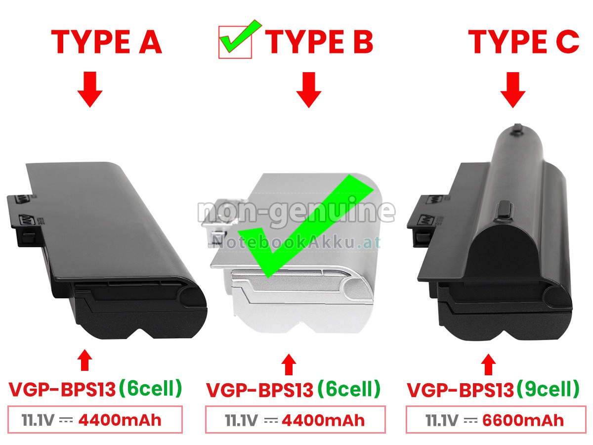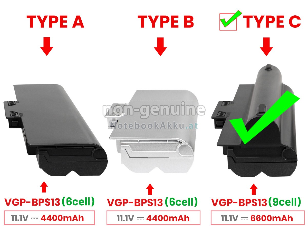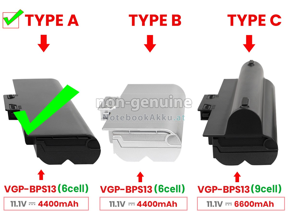 2 Vergleichen Sie die Spannung und das Fassungsvermögen Ihrer Akku für Sony VAIO VGN-FW11ZU mit unserer, dann schauen Sie das Bild und prüfen Sie, ob die Schittstelle und Form der neuen Akku gleich mit der alten Batterie ist.