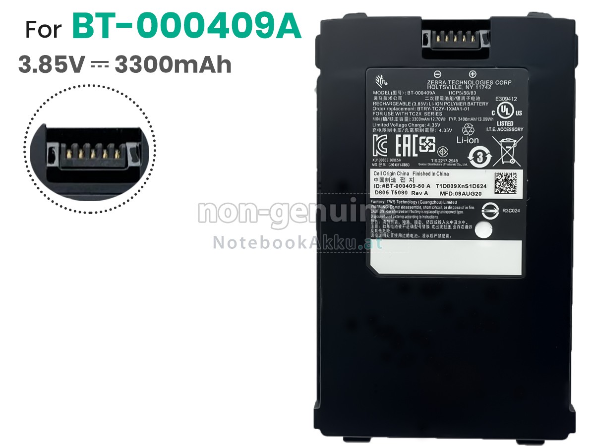 Ersatzakku für Zebra BT-000409A in der Webseite NotebookAkku.at zählt zu besten Wahlen. Wir bieten Ihnen mit günstigerem Preis die hochwertigere Akku. Zebra BT-000409A Akku, der aus hochwertigem Li-ion von Samsung, Panasonic und LG hergestellt wird, kann für mindestens 600 Zyklen aufgeladen / entladen werden, was Ihnen ein hervorragendes Erlebnis zur anhaltenden Verwendung bietet.